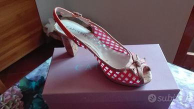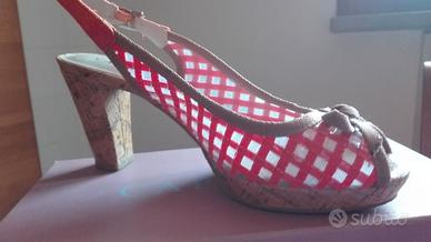 TACCO CIRCA 9 CM - FASCIA QUADRETTATA COLOR ARANCIO, CINTURINO E FIOCCO DECORATIVO USATE SOLO UN PAIO DI VOLTE QUINDI TENUTE MOLTO BENE E GIA' PULITE SCATOLA ORIGINALE