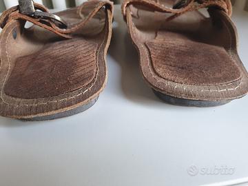 Infradito da uomo Cafe' Noir in cuoio color tabacco. Usati pochissimo in ottimo stato. Tomaia rinforzata con metallo. Modello molto particolare e raro