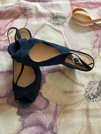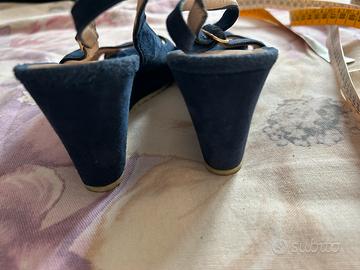 Sandali camoscio made in Italy marca Roberta ( storico negozio milanese) nr 38 colore blu. Tacco 7,5 cm. Ottimo stato