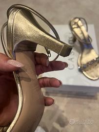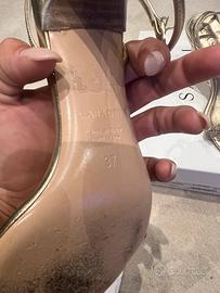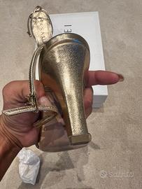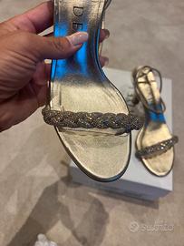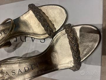 Vendo sandali come da foto In ottime condizioni marca CASADEI numero 37 complete di scatola e sacca originale (il tacco è stato sostituito allego foto)