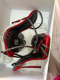Sandali Casadei rossi con dettalgio floreale