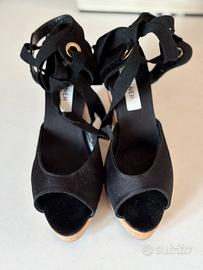 Utilizzati pochissime volte. Con tacco in legno e lacci alla caviglia. Storico brand di sandali e spadrillas.