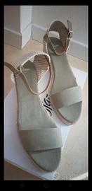 Sandali con zeppa bassa 3cm, colore verde Kaki, con cinturino. marca Castaner. Modello Bala. Marchiati 41 ma calzano nr.40. Nuovi, perfetti, mai indossati