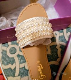 * Design: Ciabatte piatte con fascia superiore decorata con perle