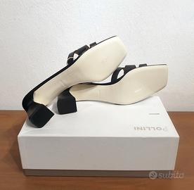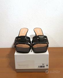 Sandali ciabattina, tacco, pelle, nero, Pollini,41