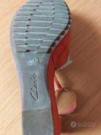 Sandali estivi in camoscio arancio. Tacco con zeppa e motivo decorativo di strass sul fronte , bellissimi , numero 38,5 , vendo perché piccoli per me