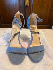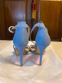 Eleganti sandali con tacco in camoscio azzurro. - Materiale: camoscio - Colore: azzurro - Dettaglio cinturino alla caviglia con fibbia - Suola interna in vera pelle