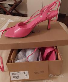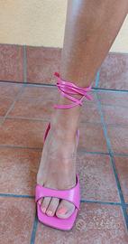 Sandalo colore rosa , in vera pelle, con lacci da arrotolare su caviglia a piacimento, n.39 ,sono nuovo mai usati in confezione originale.