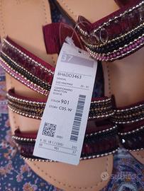 Sandali eleganti con dettagli di perline. Perfetti per aggiungere un tocco di luce al tuo outfit. N. 37 Sono nuove con cartellino. - Decorazioni con perline color oro nero e diverse tonalita' di rosa. - Design a fascia. - Suola comoda.