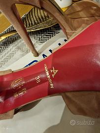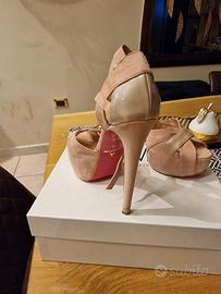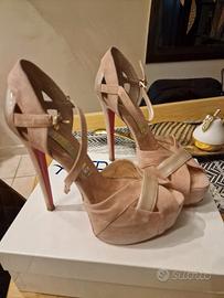 sandali con plateau e tacco 12 in camoscio e pelle cipria made in italy marca altramarea usate mezza giornata numero 38