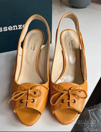 Sandali Essenze, misura 39, totalmente in vera pelle, morbidissima, con inserti in vera pelle scamosciata tono su tono (tacco, plateau, laccetto).