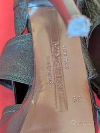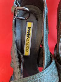 sandali ,tacco alto intrecciati con plateau aperti in punta usati 5 volte vera pelle Manas lea Foscati