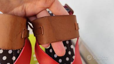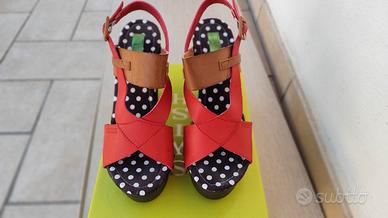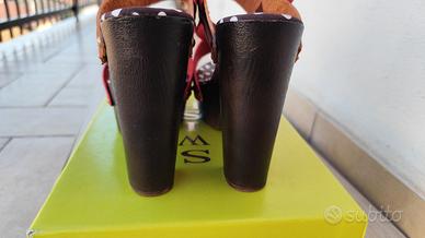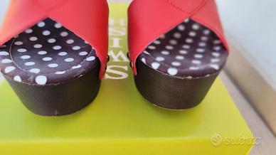 Sandali Swish rossi con tacco numero 38, usati qualche volta, presentano alcune righe sulla parte color cuoio, segnalate in foto.