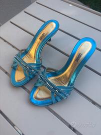 Sandali con tacco di LERRE azzurri con brillantini Vero cuoio Made in Italy Tacco a spillo 5.5 cm Numero 35 Come nuove, utilizzate solo una volta