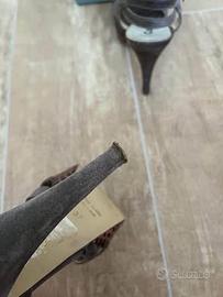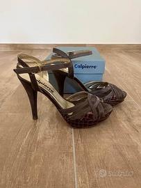 Sandalo in cuoio Calpierre con plateau. Colore Marrone Taglia 37 Scatola originale. Sottotacchi da rifare e leggera usura sotto il plateau. Vendo per inutilizzo.
