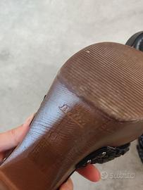 Sandali super comodi poco usati con tacco e plató tinta legno scuro