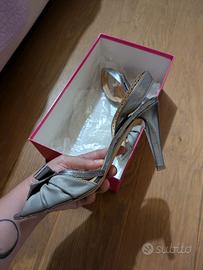 Vendo paio di graziosi sandali argentati con tacco, marca Fornarina.