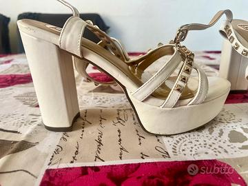 Vendo sandali originali Laura Biagiotti, colore bianco con borchiette dorate. Modello elegante con cinturino. Presentano solo normale usura sulla punta della suola (non visibile quando indossati), per il resto sono in ottimo stato. Numero 36. ⚠️ SOLO RITIRO A MANO.