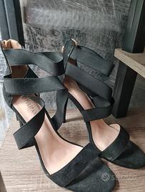Tacco a spillo di circa 10cm(alto ma stabile), suola leggermente antiscivolo. Scarpe femminili eleganti, senza difetti strutturali. Le immagini mostrano ogni dettaglio visibile