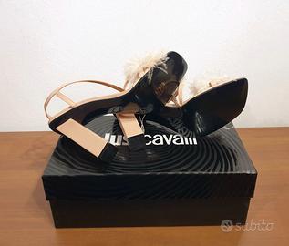 Sandali con tacco, pelle, piume, rosa, Cavalli, 40