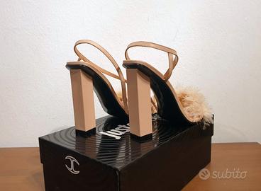 Bellissimi sandali con tacco alto e cinturino alla caviglia by Just Cavalli Tomaia colore rosa chiaro con piume n.40 Prezzo retail €540,00 PRODOTTO IN ITALIA Prodotto di provenienza italiana, sinonimo di qualità e creatività. COMPOSIZIONE Pelle MISURE Altezza tacco 11 cm DETTAGLI pelle, piume, tinta unita, interno in pelle, punta quadrata, tacco geometrico, suola in gomma, sandali ankle strap
