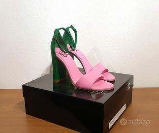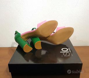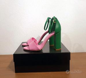 Sandali con tacco, pelle, rosa e verde, ISLO, 38