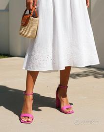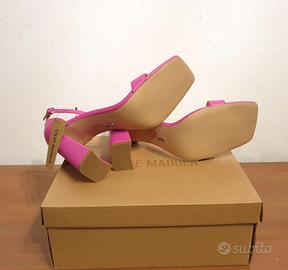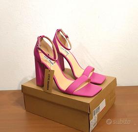 Eleganti sandali con tacco e cinturino alla caviglia by Steve Madden Tomaia 100% pelle Colore rosa fucsia n.42 (US 11) COMPOSIZIONE Pelle MISURE Altezza tacco 11 cm DETTAGLI Sandali slingback Tinta unita Pelle, Interno foderato, Suola in gomma Cinturino alla caviglia con fibbia Punta quadrata Tacco squadrato