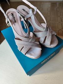 Si vendono sandali con tacco (num. 39) color platino con pochette abbinata - Melluso