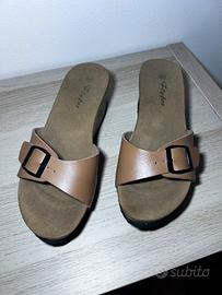 Sandali con zeppa color cuoio, comodissimi e leggeri.