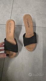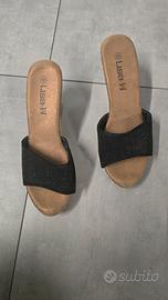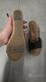 sandali con zeppa color nero e sughero, come nuovi usati una volta