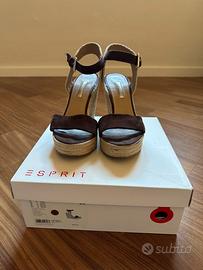 Sandali con zeppa di corda, indossati pochissimo, col. Marrone