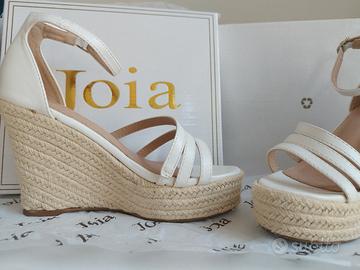 Sandali con zeppa colore bianco e zeppa in corda misura 36. Usate una sola volta, in condizioni pari al nuovo come da foto.