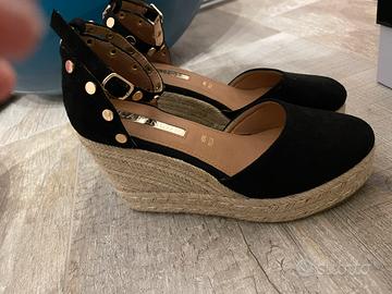 Vendo sandali con zeppa praticamente nuovi, mai indossati, tenuti in modo preciso nella loro scatola. Marca Cafénoir