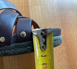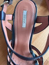 Con piccoli segni di usura,utilizzati poco, non porto più i tacchi…. In foto le misure di zeppa e plateau. In pelle e tacco ricoperto in corda.