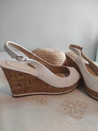 👉🏻 Sandali con zeppa in sughero bianchi da donna