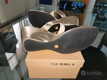 Sandali con zeppa in vera pelle NUOVI MAI USATI Tg39 Marca Via Roma 15