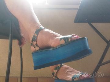 Sandali con zeppa PF16, perfetti per la primavera-estate. Indossati una sola volta. Sono in ottime condizioni e presentano una fantastica combinazione di colori.