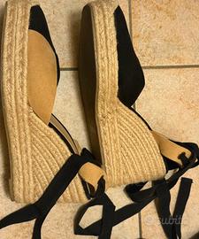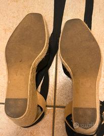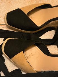 Vendo sandali con zeppa in camoscio nero e beige da allacciare alla caviglia, Zara, n.41.