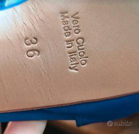 Indossate una sola volta. Vero cuoio. Made in ltaly. Design elegante, fascia anteriore aperta, cinturino alla caviglia con fibbia e tacco spesso.