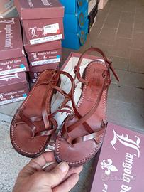 Sandali da donna artigianali in vero cuoio, made in Italy, marca Angolo del cuoio, rimasti numeri 40 colore ocra e 36 colore testa di moro, ritiro milano zona san siro