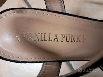 Sandali da donna con plateau Vanilla Punk misura 39 colore nero tacco 10,5 cm effetto alcantara. Scarpe usate ma ancora in buono stato.
