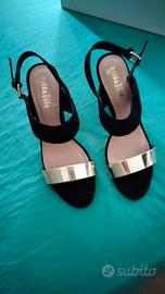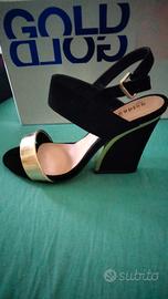 sandalo con tacco 10 cm da donna, fibbia rivestita con lamina d'oro e cinturino alla caviglia