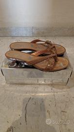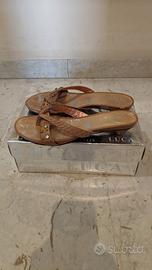 Vendo sandali da donna in cuoio, colore cuio, taglia 40, marca Luca Stefani, modello Syria, nuovi, mai indossati con scatola originale, prezzo 30€ (prezzo nuovo 71€)