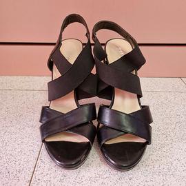 Sandali da donna neri Estrada con tacco alto Caratterizzati da fasce incrociate, elastiche e in vera pelle. Stile elegante e femminile. Numero 38 Ritiro: Roma, Anzio e Zagarolo.