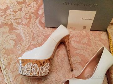 Sandali décolleté open the Gianmarco Lorenzi. Colore bianco. Numero 37. Bellissime décolleté Gianmarco Lorenzi. Plateau cm 5 e tacco alto cm 15. Particolare applicazione di pizzo macramè sopra il sughero. Con scatola originale. Perfette.