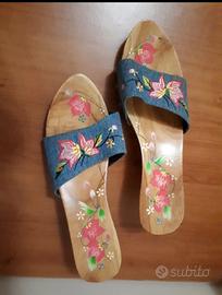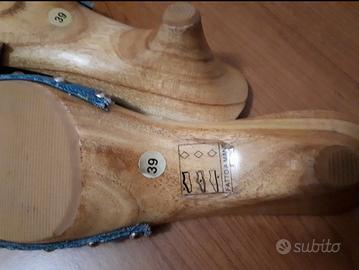 Vendo sandali denim, in legno fatti e dipinti a mano, n39, indossate in un paio di occasioni, come nuovi