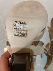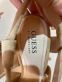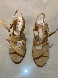 Sandali Guess beige in camoscio, hardware oro, tacco doppio, numero 38, mai utilizzati. Ottime condizioni.