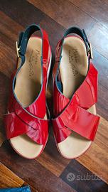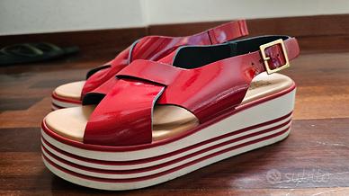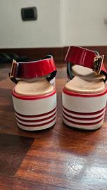 Sandali di vernice rossi, con zeppa bianca, usati una volta.