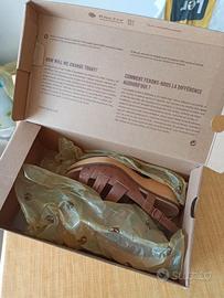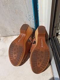 Vendo sandali da donna anti fatica, originali marca Timberland, numero EU 38, UK 5, US 7, colore marrone, con tacco in legno e parte superiore in pelle cuoio, usati poco e in buone condizioni. Scatola originale in dotazione.