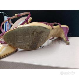SANDALI DONNA APERTI BEIGE E BORDEAUX MIU MIU BUONE CONDIZIONI TACCO CONSUMATO MA CON UN RICAMBIO TAGLIA 37.5
